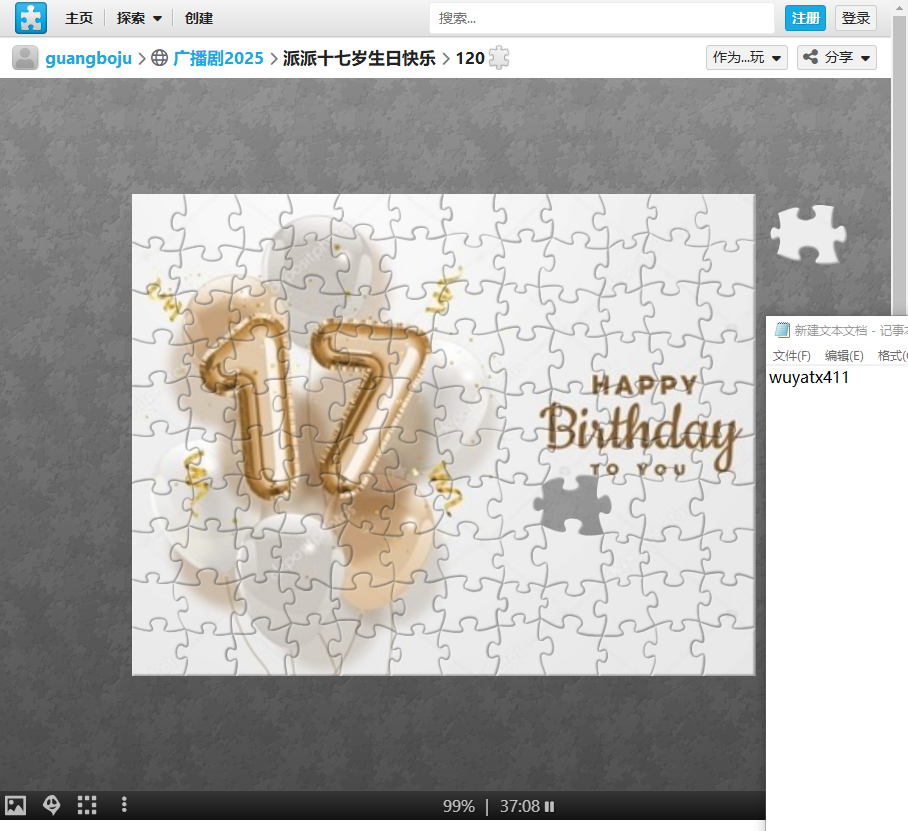 按照要求完成拼图即可获得:99pb+周年积分2分