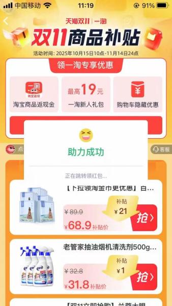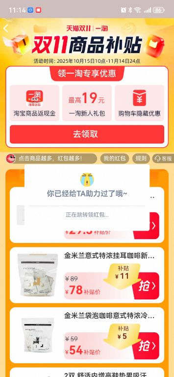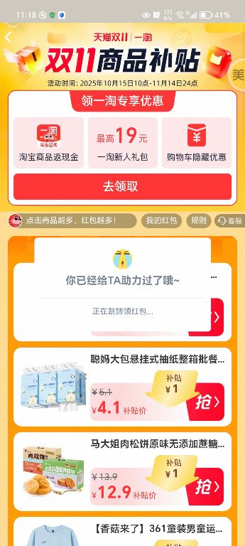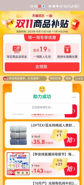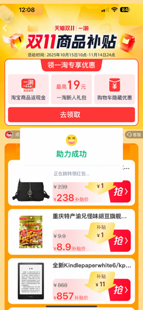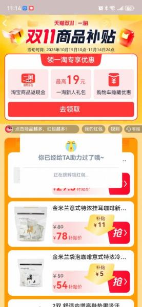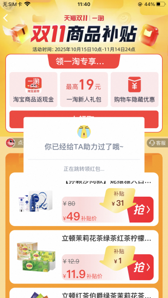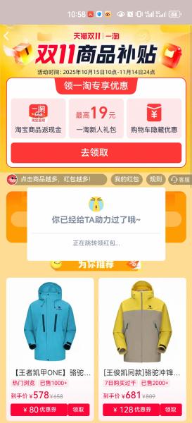 [热线求助] 【结束】【11.2】淘宝助力,一次188花,非淘金币版