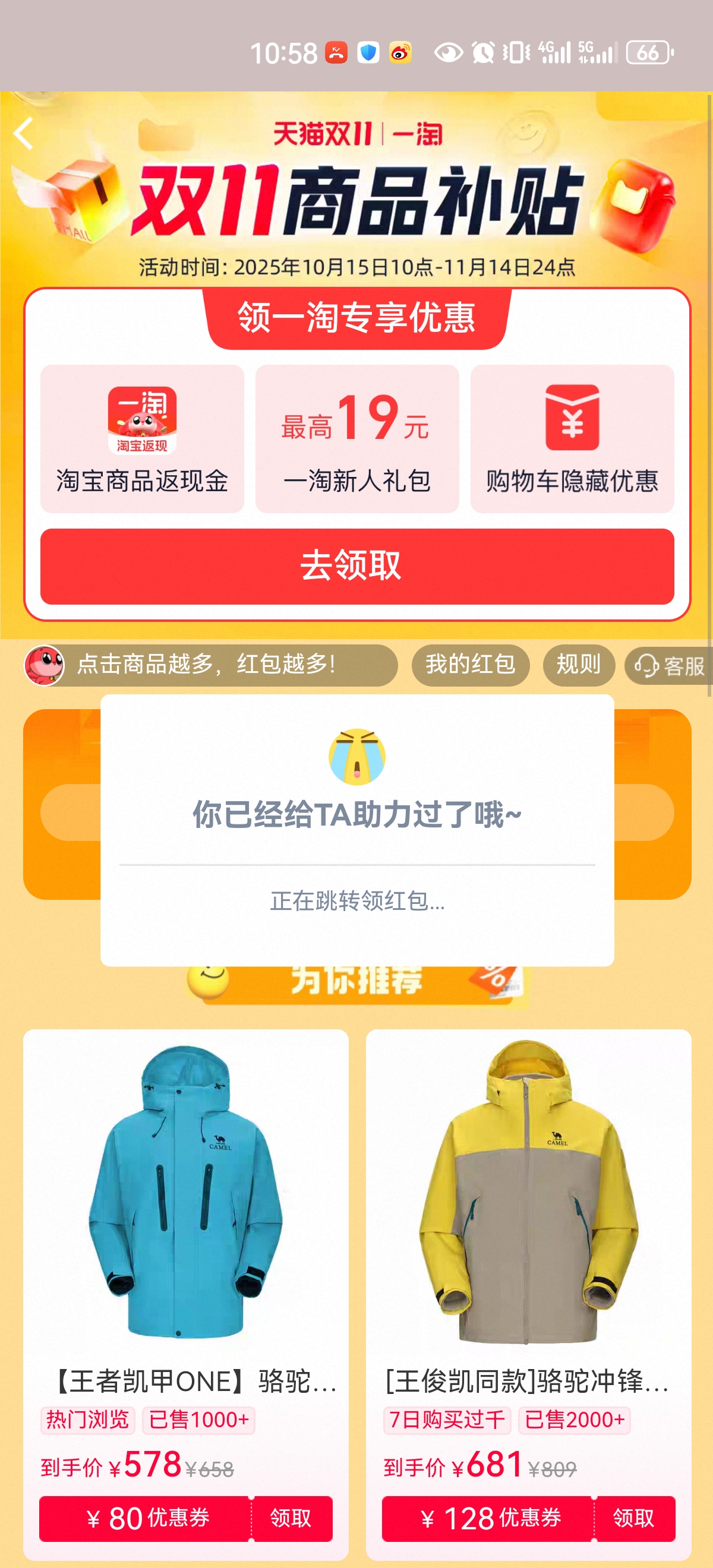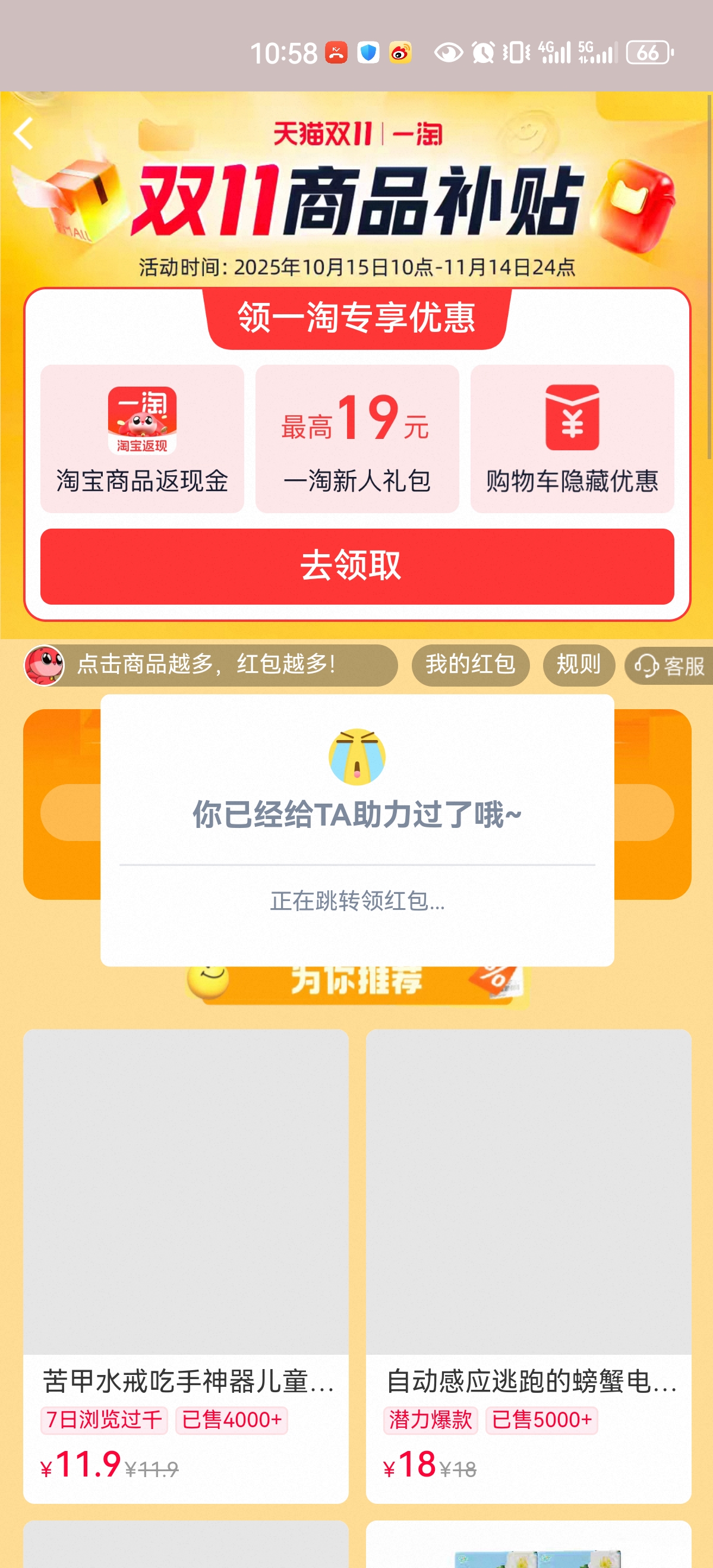 1. https://m.tb.cn/h.SoPKzwO?tk=vGZ3fgcrcrU CZ009 「去淘宝帮好友助力,得双11购物红包」