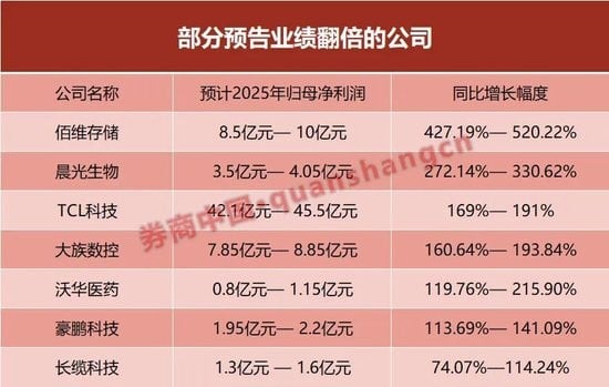 【萌喵】【转】最高猛增520%!A股批量晒出超级“战报”,一晚7家官宣净利翻倍