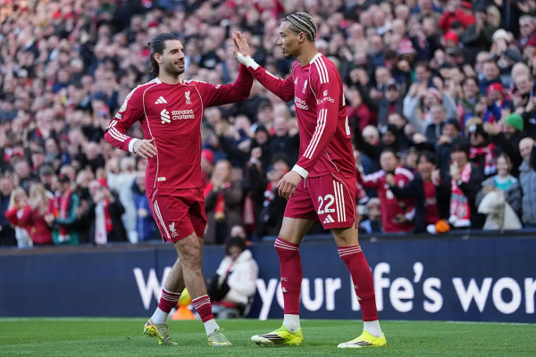 北京时间2月28日23时,2025-26赛季英超联赛第28轮继续进行,利物浦坐镇安菲尔德球场5-2横扫西汉姆,取得联赛三连胜,即时排名超越切尔西,升至第五位,同时积分追平排名第四位的曼联。埃基蒂克开赛5分钟先拔头筹,随后范迪克第24分钟扩大领先优势,麦卡利斯特上半场结束前接埃基蒂克助攻再下一城;绍切克第49分钟扳回一分,加克波第70分钟接埃基蒂克助攻结束7场比赛进球荒。此后,卡斯特拉诺斯打进一球,弗林蓬制造迪萨西乌龙球锁定比分。