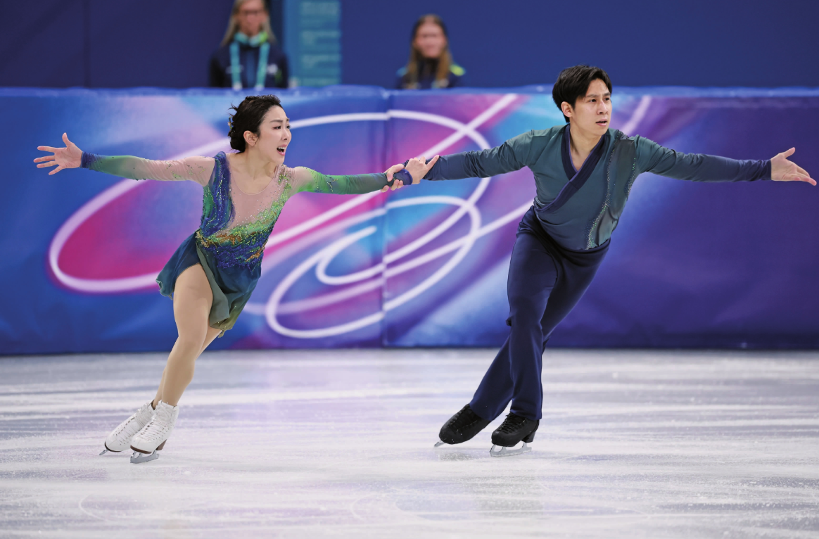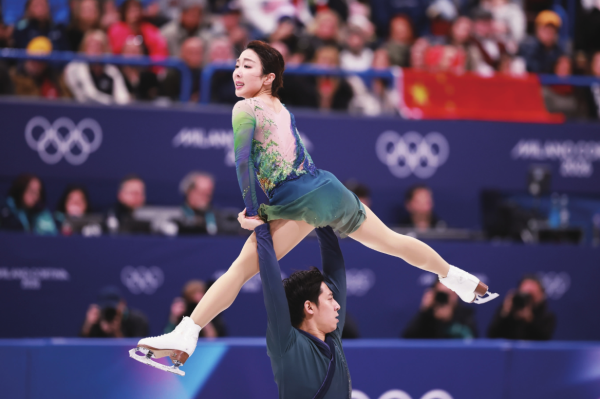 自由滑赛场,青绿色战衣亮相,隋文静参与编排的《只此青绿》缓缓奏响。冰刀划过冰面,两道身影交织缠绕,将中式美学与19年的相伴尽数融进四分多钟的表演。“既是运动员也是编舞,能把中国文化融进奥运赛场,我已经心满意足。”隋文静说。