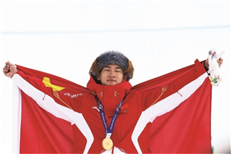 展现了祖国至上、为国争光的爱国情怀。苏翊鸣在获得单板滑雪大跳台铜牌后,以“让国歌在全世界面前奏响”的信念,不惧压力,挑战极限,在坡面障碍技巧项目上为代表团夺得首金。谷爱凌在夺得自由式滑雪坡面障碍技巧银牌后,第一时间寻找国旗。宁忠岩在确认自己夺得我国速度滑冰男子1000米首枚奖牌后,不自觉地看向观众席挥舞国旗的方向,实现了“在奥运会上把中国国旗升起来”的梦想。孙龙在获得短道速滑男子1000米银牌后,身披国旗绕场致意,随后把国旗整整齐齐叠放好。他们用实际行动证明,为国争光是冰雪健儿无上的光荣与责任。