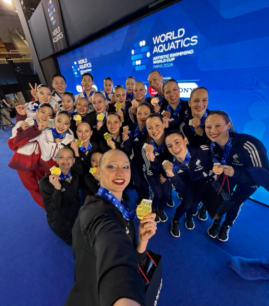 北京时间3月28日,在巴黎举办的花样游泳世界杯法国站集体自由自选比赛中,俄罗斯队以260.6329分夺得冠军,由两名男选手加入的中国队落后22分多,获得亚军。法国队摘得铜牌。 ​​​​