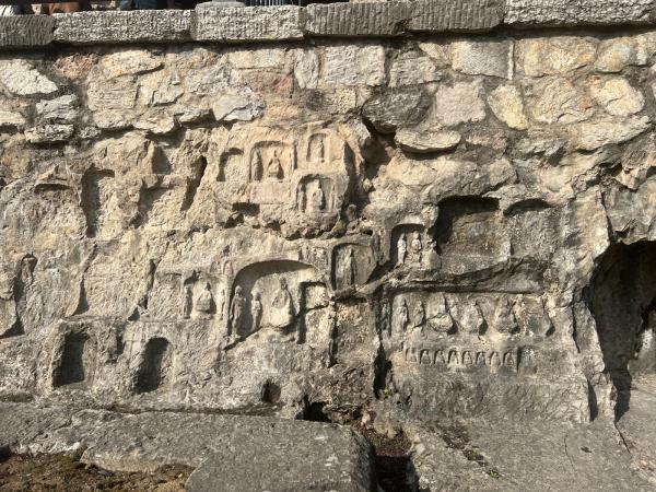 外墙壁画,可以想象刚刚雕刻出来应该是很精细的,历史的风霜