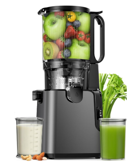 榨汁机配有 5.8 英寸(约 14.7 厘米)大进料槽,冷压榨汁机适用于全蔬菜和水果 400 瓦,慢速粉碎榨汁机 易清洗果汁机 高果汁产量