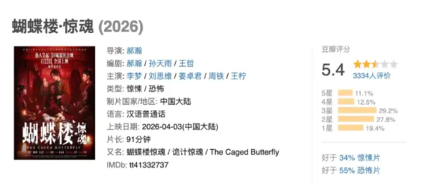 【转】《蝴蝶楼》预测票房9300万,小成本恐怖片的后劲太惊喜